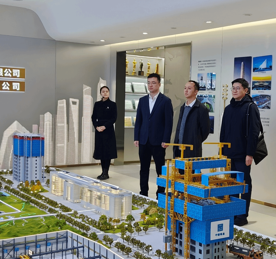 在中建三局科创产业发展有限公司执行总经理白宝军的陪同下,学院一行首先参观了企业文化馆。通过详实的图文展板、实物模型及沉浸式讲解,深入了解了企业的发展历程、核心业务布局、技术创新成果以及在智能建造、新型建筑工业化等领域的行业优势与战略规划,对企业深耕建筑科技升级、践行绿色发展理念的实践有了全面认识。