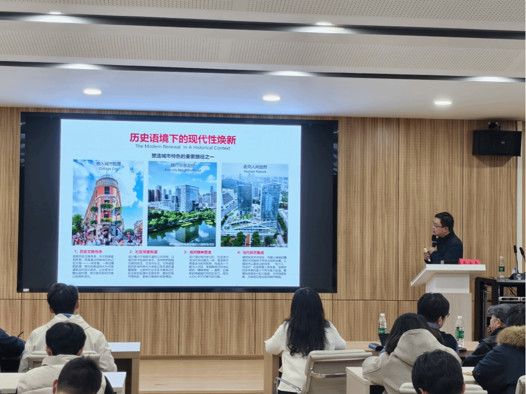 2025年12月11日,中信建筑设计研究总院有限公司党委委员、副总经理、总建筑师、正高职高级工程师高安亭应邀到我校作题为“历史语境下的现代性焕新-中信设计本土城市更新的实践与探索”的大学生素质报告会。本次报告在黄家湖校区教五楼52302举行,由yl6809永利官网系主任徐虹教授主持,学院相关专业师生到场聆听。
